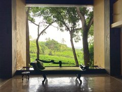 Das Ayurveda-Center im hinteren Teil der Anlage ist gewissermassen der Mittelpunkt des Resorts. Wie in Sri Lanka üblich, lässt man am Eingang seine Flip-Flops zurück und geht barfuss ins Gebäude. Hier sind die Behandlungsräume für Ayurveda- und Kräuterdampf-Behandlungen, der Kräutergarten, die Kräuterbäder sowie der Akupunktur-Raum auf zwei verschiedenen Ebenen untergebracht. Das halboffene Restaurant befindet sich im obersten Stock des Gebäudes. Das Richtung Meer gelegene zweite Hauptgebäude beherbergt alle 45 Gästezimmer. Etwas weiter unten befinden sich der Swimmingpool mit Liegestühlen und ein Yoga-Pavillon. Von hier aus sind es nur ein paar Schritte zum Gartentor, durch das man zum öffentlichen kleinen Sandstrand gelangt. Zum grösseren Strand gelangt man auch in wenigen Gehminuten vom gleich nebenan liegenden Barberyn Waves. Die Sonnenuntergänge, welche Sie von hier aus beobachten können sind wirklich spektakulär!
