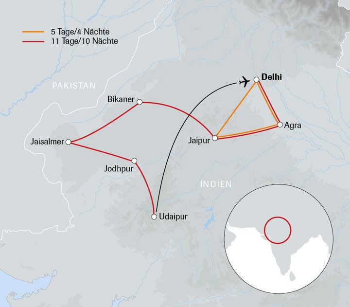 - Flüge nach/ab Delhi (gerne buchen wir die Flüge für Sie)